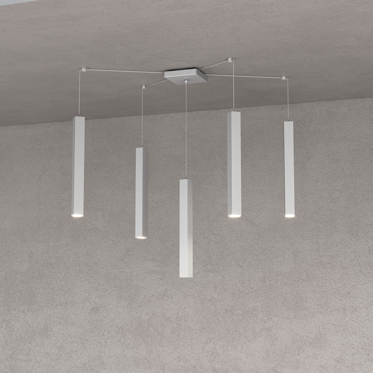 Sospensione Moderna Square Tube Metallo Bianco 5 Luci Gu10