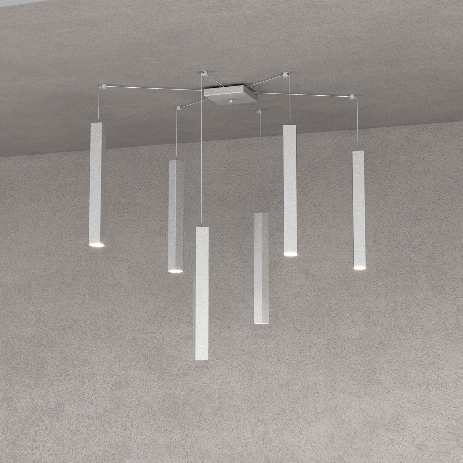 Sospensione 6 luci con decentratori realizzata con tubolari metallici ultrasottili aventi sezione quadrata e verniciata in finitura grigio.. Queste lampade hanno un’estetica essenziale e poco evidente, che si adatta a ogni stile e ambiente. La Serie Square Tube ti offre anche la possibilità di sostituire facilmente la lampadina, grazie al sistema intuitivo e pratico. La Serie Square Tube è una collezione che unisce la qualità e la funzionalità, per creare un’illuminazione elegante e di tendenza. Scopri la Serie Square Tube e lasciati convincere dalla sua semplicità e originalità.Questo articolo è disponibile in diverse finiture e/o dimensioni. E' possibile indicarlo nell'apposito campo NOTE presente in conclusione di ordine oppure contattarci dopo aver effettuato l'ordine.