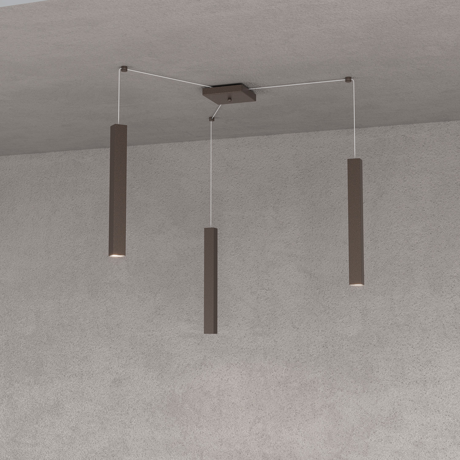 Sospensione Moderna Square Tube Metallo Marrone 3 Luci Gu10