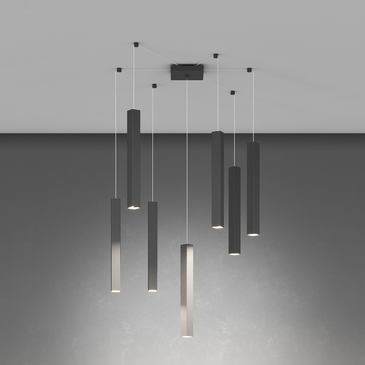 Sospensione Moderna Square Tube Metallo Antracite 7 Luci Gu10