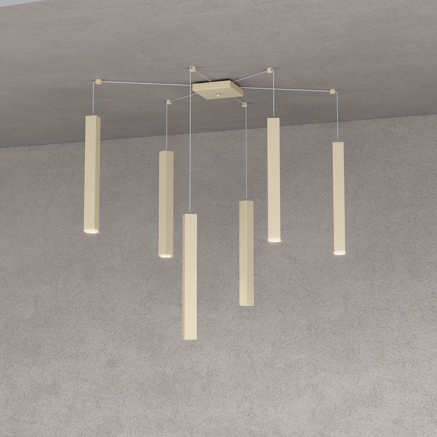 Sospensione 6 luci con decentratori realizzata con tubolari metallici ultrasottili aventi sezione quadrata e verniciata in finitura sabbia.. Queste lampade hanno un’estetica essenziale e poco evidente, che si adatta a ogni stile e ambiente. La Serie Square Tube ti offre anche la possibilità di sostituire facilmente la lampadina, grazie al sistema intuitivo e pratico. La Serie Square Tube è una collezione che unisce la qualità e la funzionalità, per creare un’illuminazione elegante e di tendenza. Scopri la Serie Square Tube e lasciati convincere dalla sua semplicità e originalità.Questo articolo è disponibile in diverse finiture e/o dimensioni. E' possibile indicarlo nell'apposito campo NOTE presente in conclusione di ordine oppure contattarci dopo aver effettuato l'ordine.