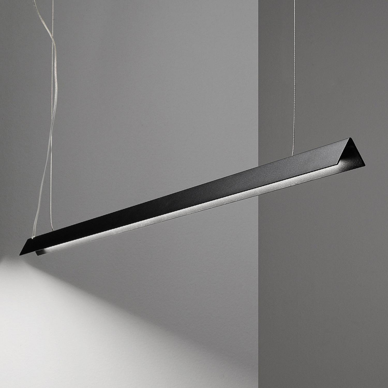 Collezione V-LINEUNA LINEA DI LUCE MODERNASospensione lineare moderna con corpo luce in allumino verniciato a polveri nero e diffusore in silicone opale.. Cavi di ac..