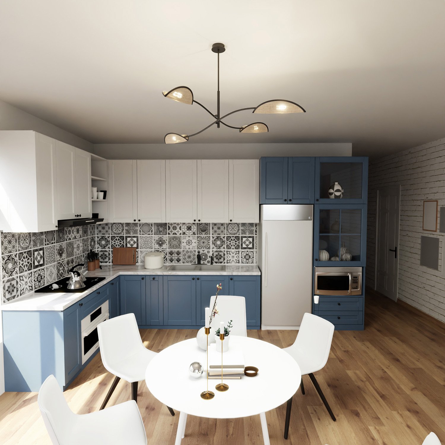 Sospensione Nordica 4 Luci Ares In Acciaio Nero Bianco E Oro Bracci Regolabili