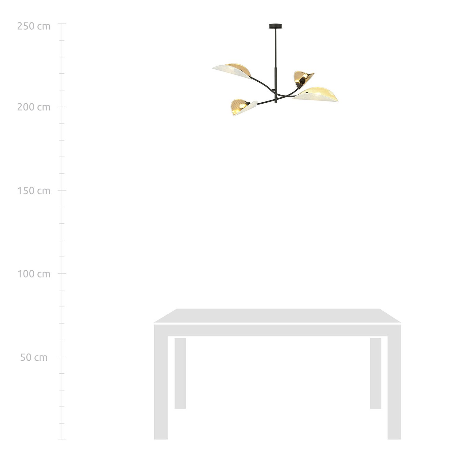 Sospensione realizzata con base in metallo nero e bracci mobili con 4 diffusori originali rivestiti di tessuto bianco all'esterno e oro all'interno. . Si adatta perfettamente ai gusti dei clienti che apprezzano materiali unici e un design originale di ispirazione etnica. Gli eccezionali paralumi a forma di foglia aggiungono una straordinaria delicatezza alla lampada. La lampada da soffitto LOTUS riscalderà perfettamente l'interno della tua casa, creando un'atmosfera accogliente. Sta meglio in soggiorno o in camera da letto e attirerà sicuramente l'attenzione di tutti gli ospiti. I paralumi aperti illuminano efficacemente la stanza, creando un'atmosfera unica. Realizzato con materiali di altissima qualità.