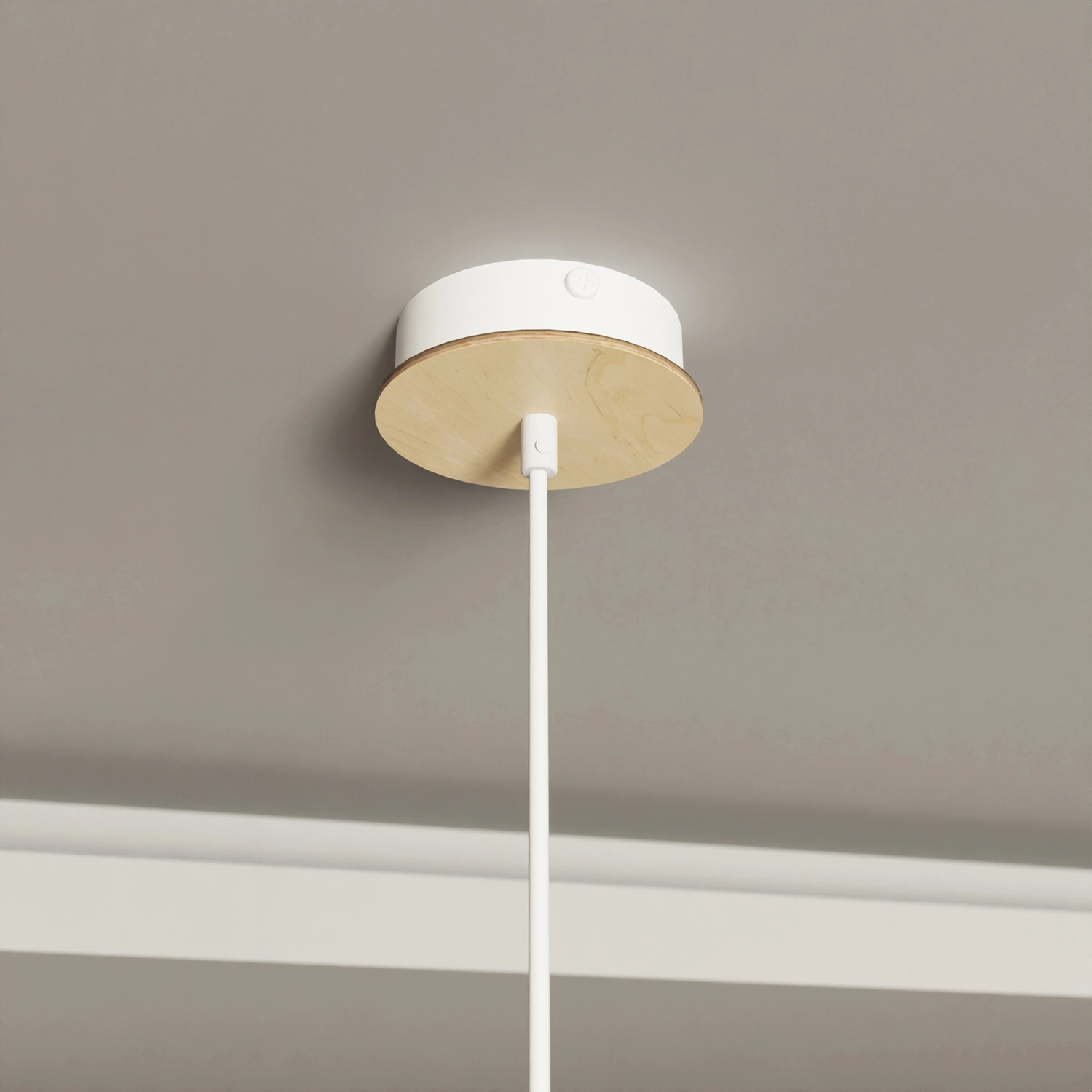 Collezione IshtarLINEE PULITE, IDEE PROFONDESospensione minimal nordica 1 luce con rosone e portalampada in legno e diffusore in acciaio traforato bianco, ad altezza..