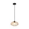 Sospensione con struttura in ferro laccato nero con cavo elettrico regolabile e diffusore in vetro soffiato ambra con rigatura in rilievo 1 luce . Prodotto 100% Made in Italy