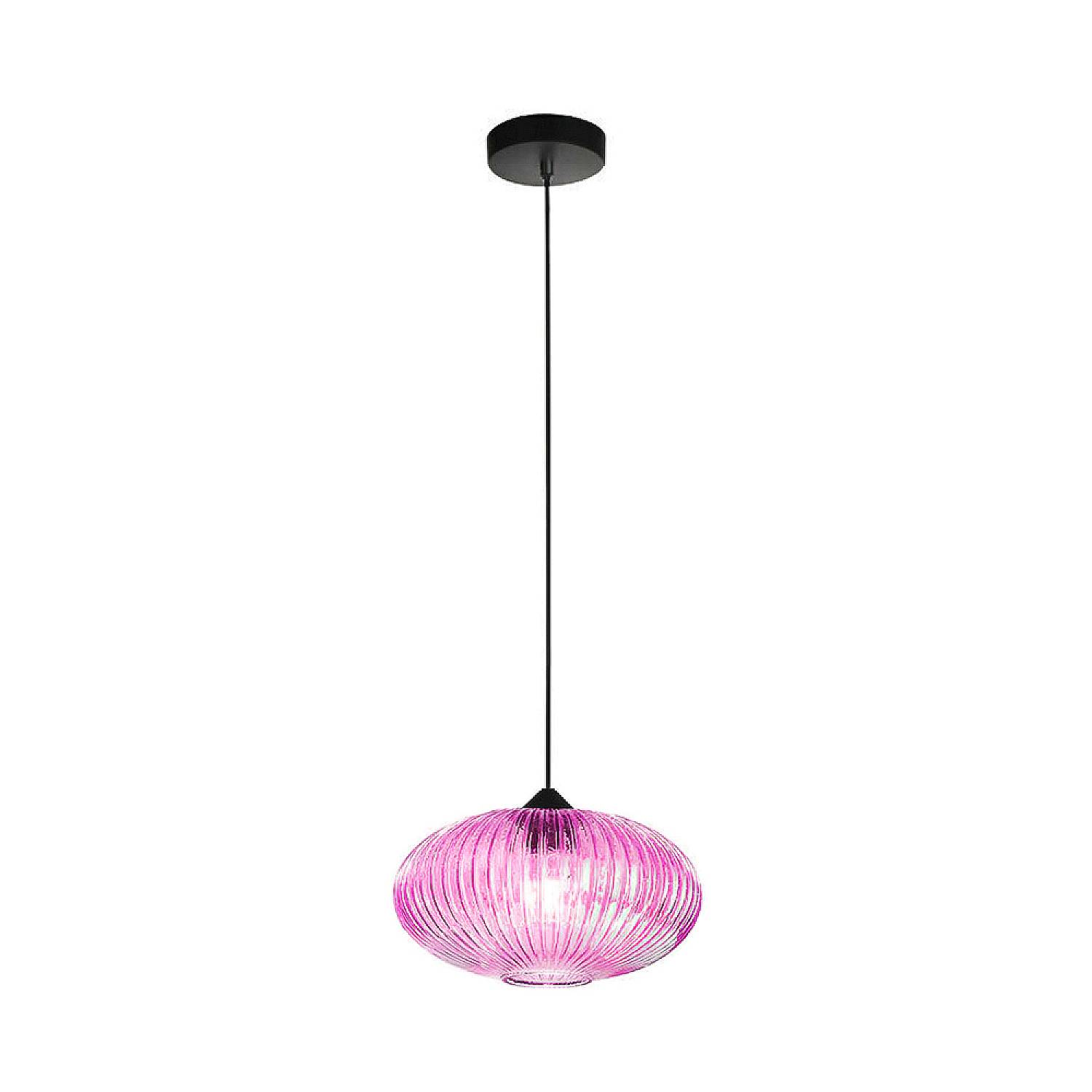 Sospensione Ovale Moderna Plisse Rosa 1 Luce E27 In Vetro Rigato