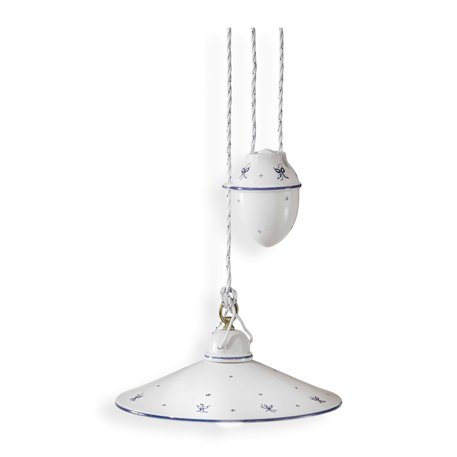 Collezione ASTIL'ARMONIA DEI DECORISospensione saliscendi in ceramica decoro Filo blu con montatura Ottone Satinato frutto di una lavorazione eseguita rigorosamente ..