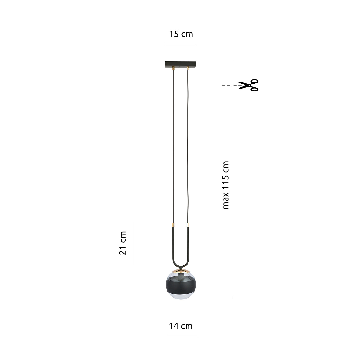 Sospensione Contemporanea 1 Luce Crio Acciaio Nero Oro E Sfera Vetro Trasparente