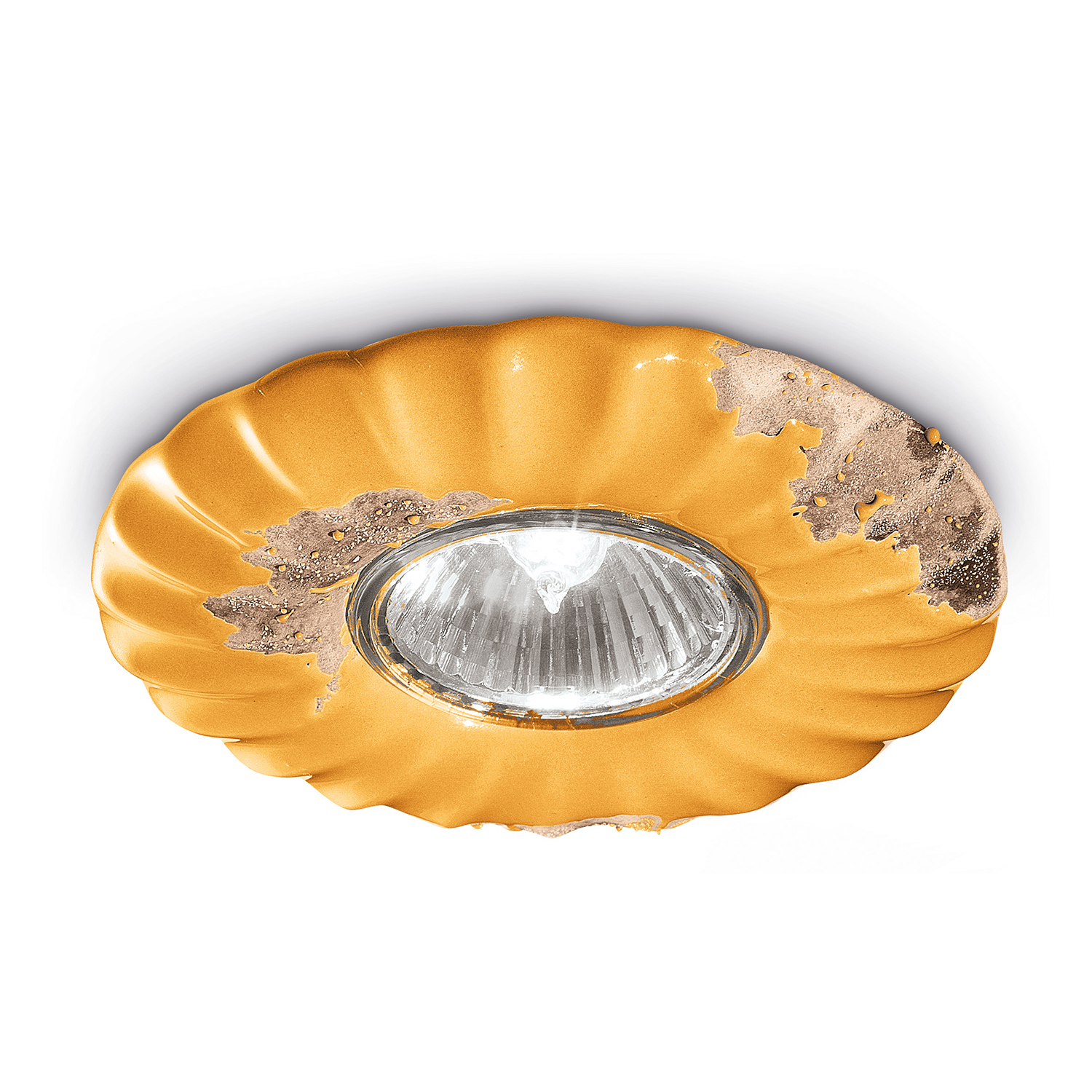 Faretto ad incasso 1 Luce in ceramica con finitura vintage giallo lavorata a mano da artigiani specializzati.. Un faretto dal design essenziale e discreto, dal diametro di appena 12 cm, che si fonde con l'ambiente da illuminare creando la giusta atmosfera nel vostro appartamento in stile vintage o industriale ricreando un clima ispirato al passato con la sua lavorazione dall'effetto volutamente vissuto. Questo articolo è realizzato interamente a mano ed è disponibile anche in altre finiture, come da foto campione. Per richiedere una composizione diversa è possibile indicarlo nell'apposito campo NOTE presente in conclusione di ordine indicando il codice della finitura oppure contattarci dopo aver effettuato l'ordine. Essendo un prodotto 100% artigianale, stai acquistando un prodotto unico e per tanto può differire leggermente dalla foto.