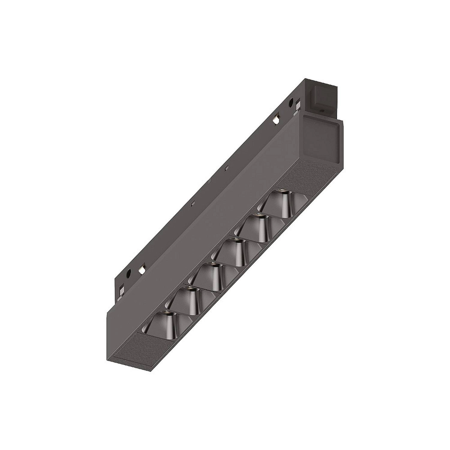 Supporto lineare dimmerabile montato su binario per interni con sorgenti LED integrate ed emissione di luce diretta.. Sistema composto da un profilo in alluminio estruso ed elementi di illuminazione a fissaggio magnetico.