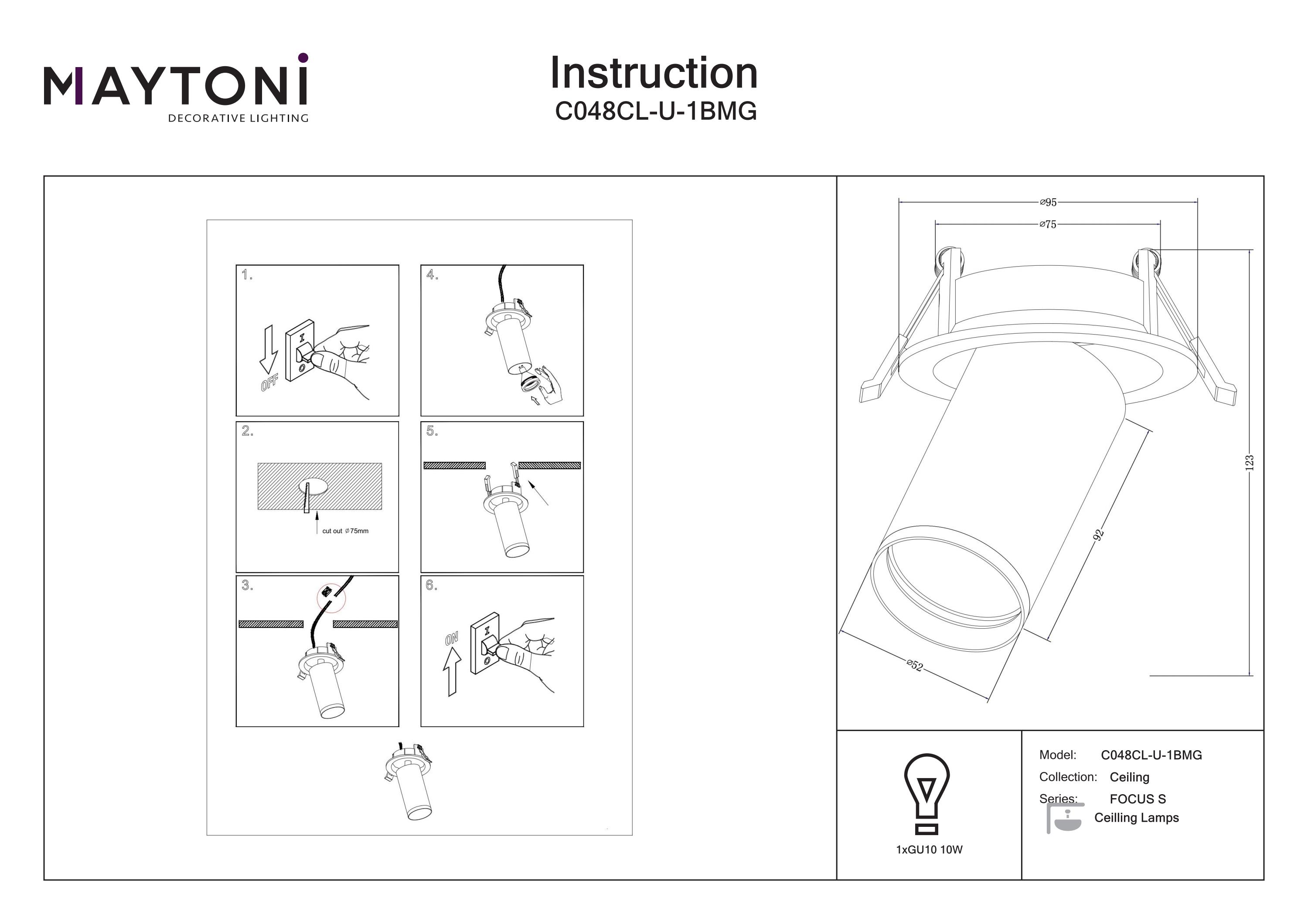 Corpo in metallo. Meccanismo girevole. Fissaggi a scelta: integrato e sovrapposto (per una o due plafoniere). Ampia gamma di colori. La sorgente luminosa è una lampadina con attacco GU10.