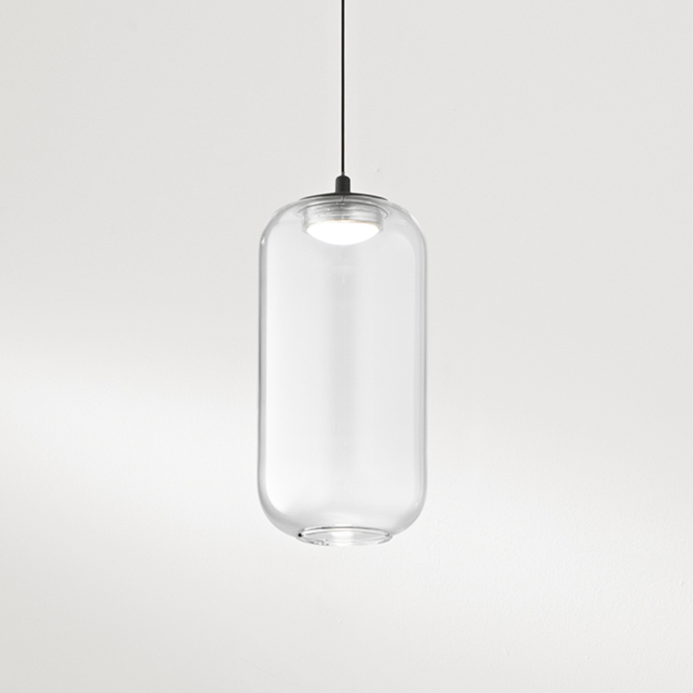 Vetro borosilicato trasparente D.10 x H.20 cm. Diffusori in vetro (borosilicato) a scelta nei vari colori. Abbinali alla sospensione con struttura in metallo e alluminio verniciato a polvere (non inclusa)