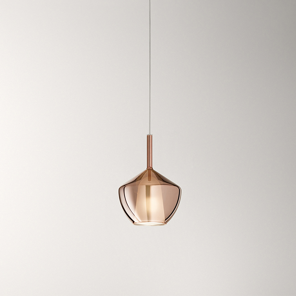 Collezione RainCOMPONI LA TUA LUCEVetro borosilicato rame specchiato D.22,5 x H.27 cm (Lcavo 250 cm) 1 luce E27 max 60W (non inclusa) altezza regolabile. Collezione ..
